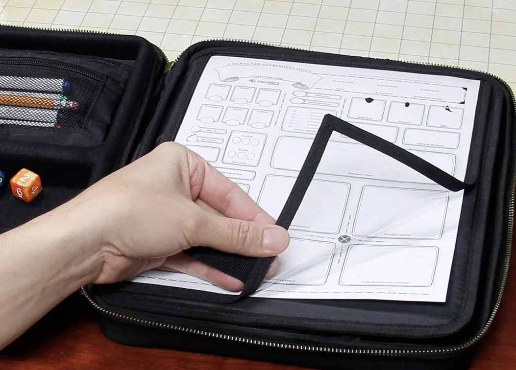 A built-in transparent protector for your character sheet that doubles as a reusable writing surface with dry erase markers (sold separately). Protect your sheet from eraser marks and keep it looking pristine.